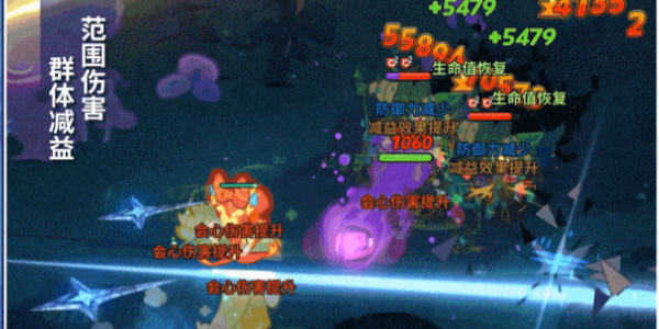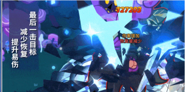 餅干特性:范圍傷害、群體減益,最后一擊對后排造成單體傷害,并對目標造成易傷、降低回復等效果。